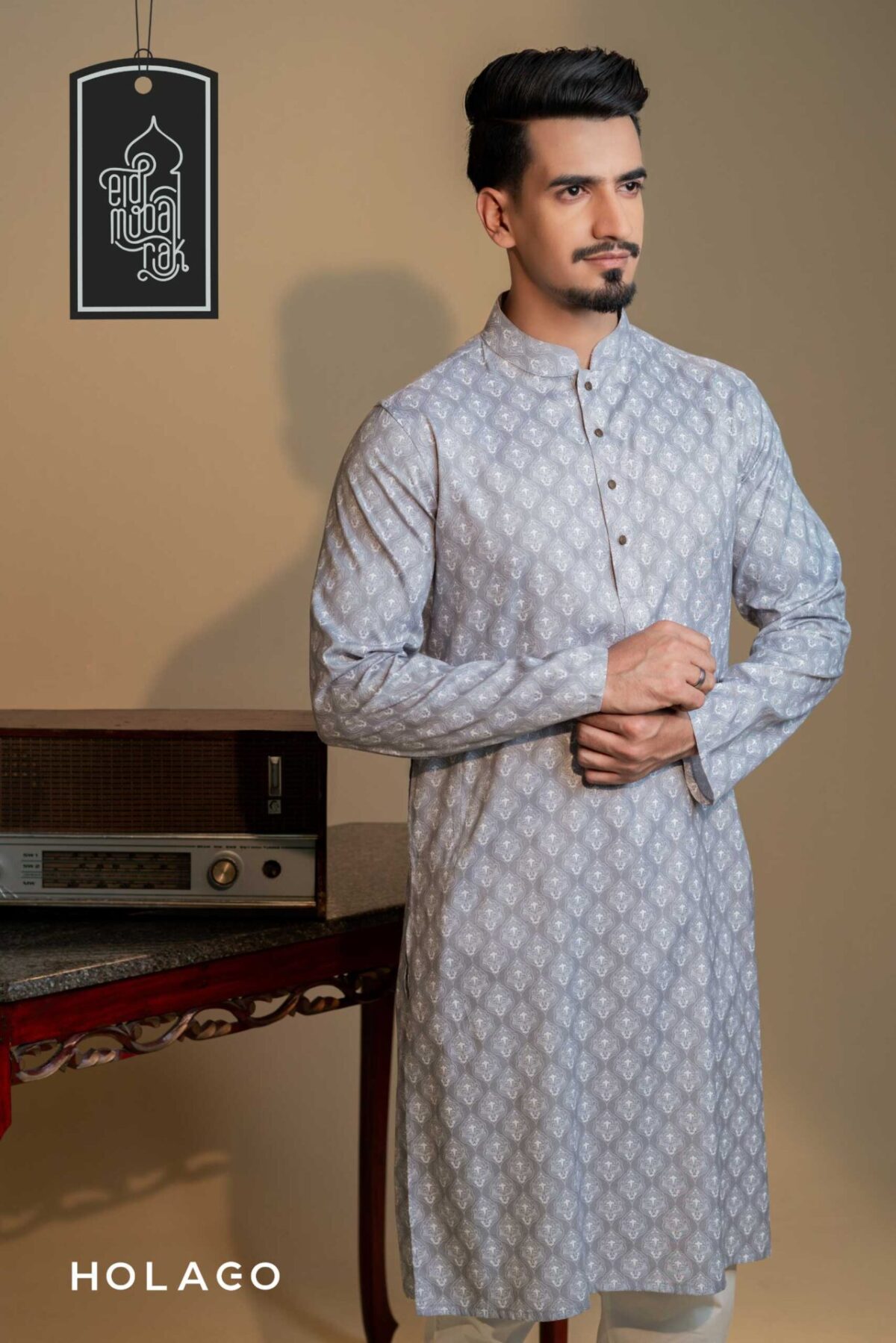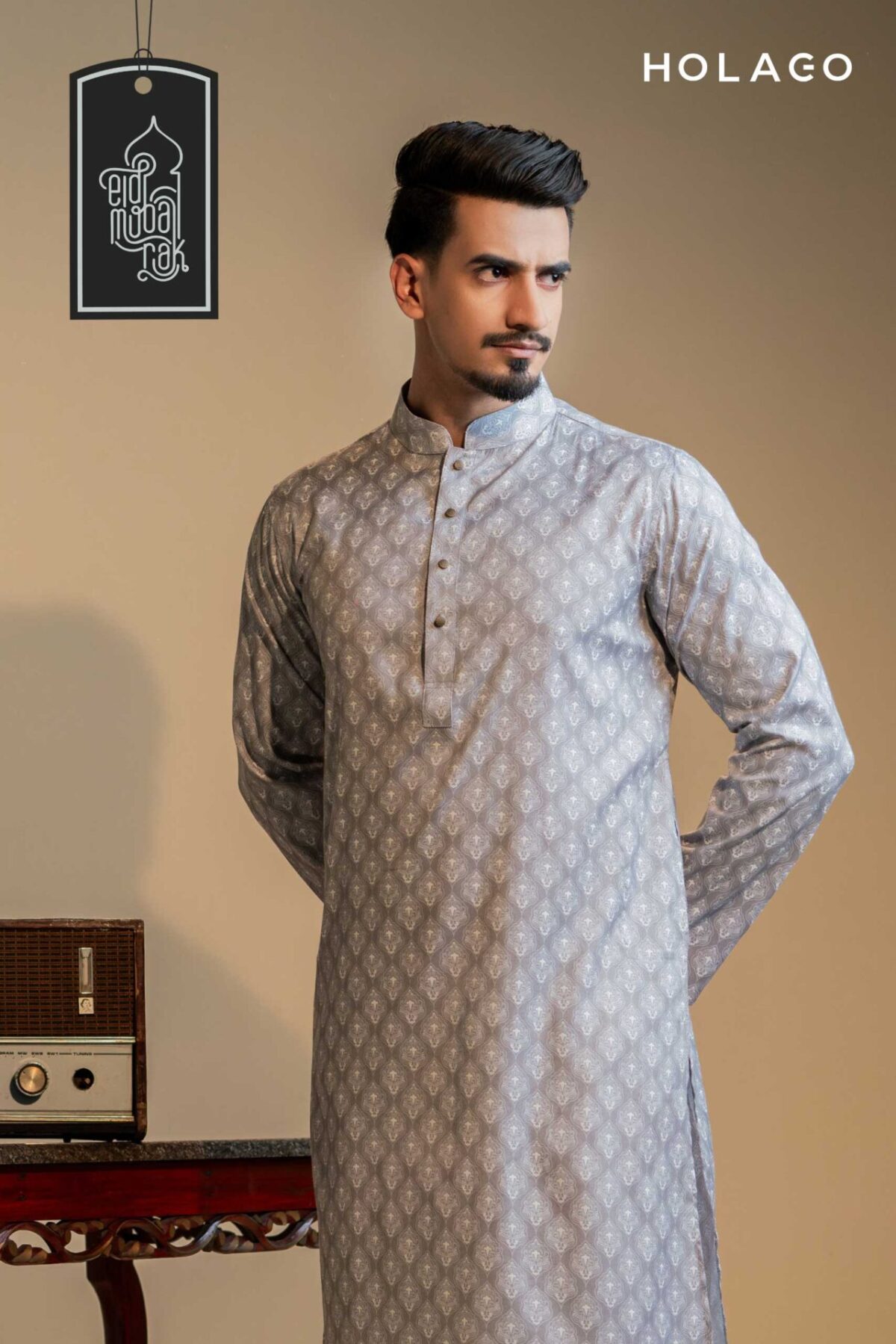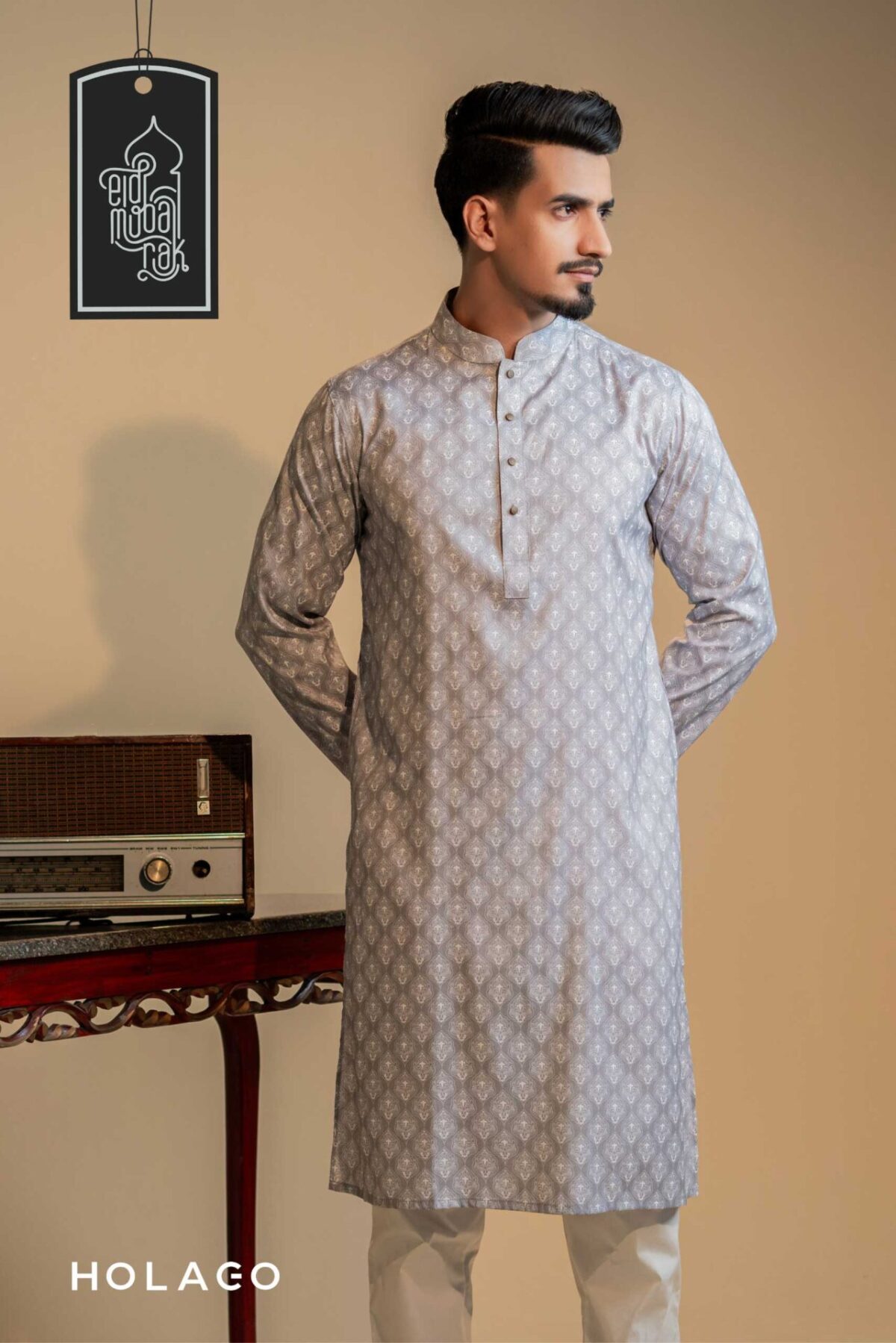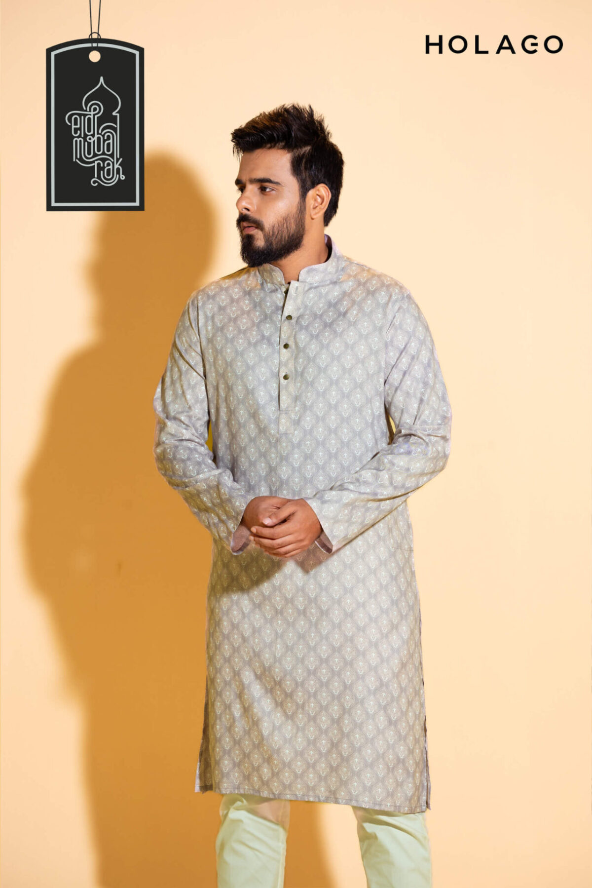 Introducing the Holago Festive Collection – a sartorial masterpiece for This Eid that seamlessly blends tradition and contemporary style. Immerse yourself in the spirit of celebration with our meticulously crafted Traditional Panjabi, featuring exquisite detailing and a harmonious fusion of vibrant colors. Tailored for the modern man, this ensemble promises comfort and sophistication throughout the festive day.